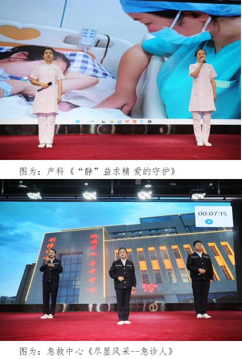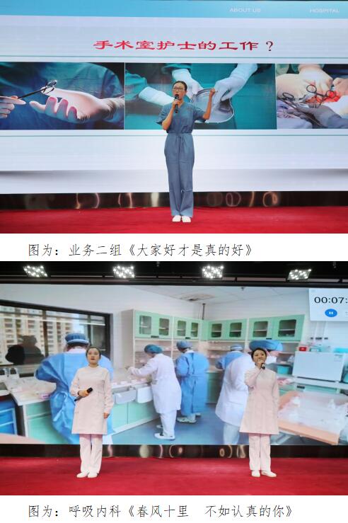 经过激烈的角逐,业务一组《有一种幸福,叫送你一朵小红花》获得一等奖;业务四组《“医”路同行 相伴相知》、手术室《让我牵着您的手》获得二等奖;产科《“静”益求精 爱的守护》、急救中心《尽显风采--急诊人》、业务二组《大家好才是真的好》、呼吸内科《春风十里 不如认真的你》获得三等奖;业务三组《从我做起 “医”切安心》、中医科《护理一生 一生护你》、新生儿科《护长派我来“巡山”》获得优秀奖。