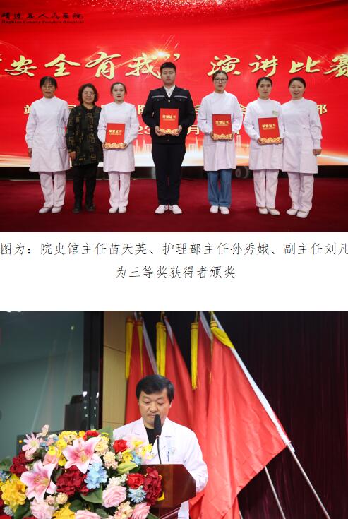 为进一步增强我院护理人员的安全防范意识,我院举办了“5.12”国际护士节演讲比赛暨表彰大会。党委副书记刘朝曦、副院长冯勇、纪委书记薛蛟、工会主席严家银、总药剂师李向峰、院史馆主任苗天英、护理部主任孙秀娥、各总护士长、科护士长及护理人员参加。