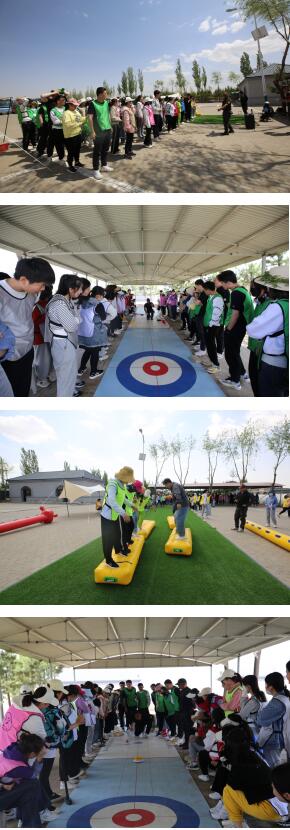 拓展训练第二站,项目更加丰富有趣,包括旱地冰壶、充气毛毛虫、同舟共济等,每项活动中队员们表现良好,依靠合理的分工与合作,默契十足,即使摔倒了也不放弃,圆满的完成了任务,体现了护理队伍积极向上的精神面貌。
