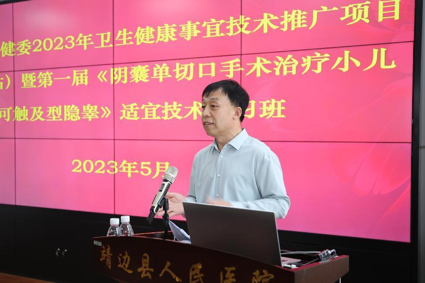 2023年5月19日,陕西省卫生健康委2023年度卫生健康适宜技术推广项目暨第一届《阴囊单切口手术治疗小儿可触及型隐睾》适宜技术学习班,在我院四楼会议室举办。本次会议由陕西省卫生健康委员会主办, 西安市儿童医院承办,我院协办。西安市儿童医院泌尿外科主任白明,榆林市儿童医院副院长、榆林市医学会小儿外科分会主委、榆林市小儿外科主任陈宏雄,我院副院长、学术委员会主任冯勇,西安市儿童医院新生儿科主任王琪、普外科主任侯崇智、泌尿外科康磊,榆林市中医院泌尿外科主任贺利明,我院小儿外科专家罗春峰、普外科医务人员以及榆林市部分小儿外科专家参加会议。会议由我院普外科、小儿外科主任马飞国主持。