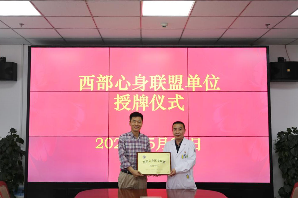 2023年5月20日,我院被授予西部心身医学联盟成员单位,授牌仪式在我院行政楼2楼会议室举行。西安交通大学第一附属医院精神心理卫生科主任、西部心身医学联盟副主席、陕西联盟主席陈云春教授出席授牌仪式,我院副院长袁海军,副院长、学术委员会主任冯勇,党委专职副书记郝世雄、医务科主任陈文章、心身科主任刘勇参加会议。