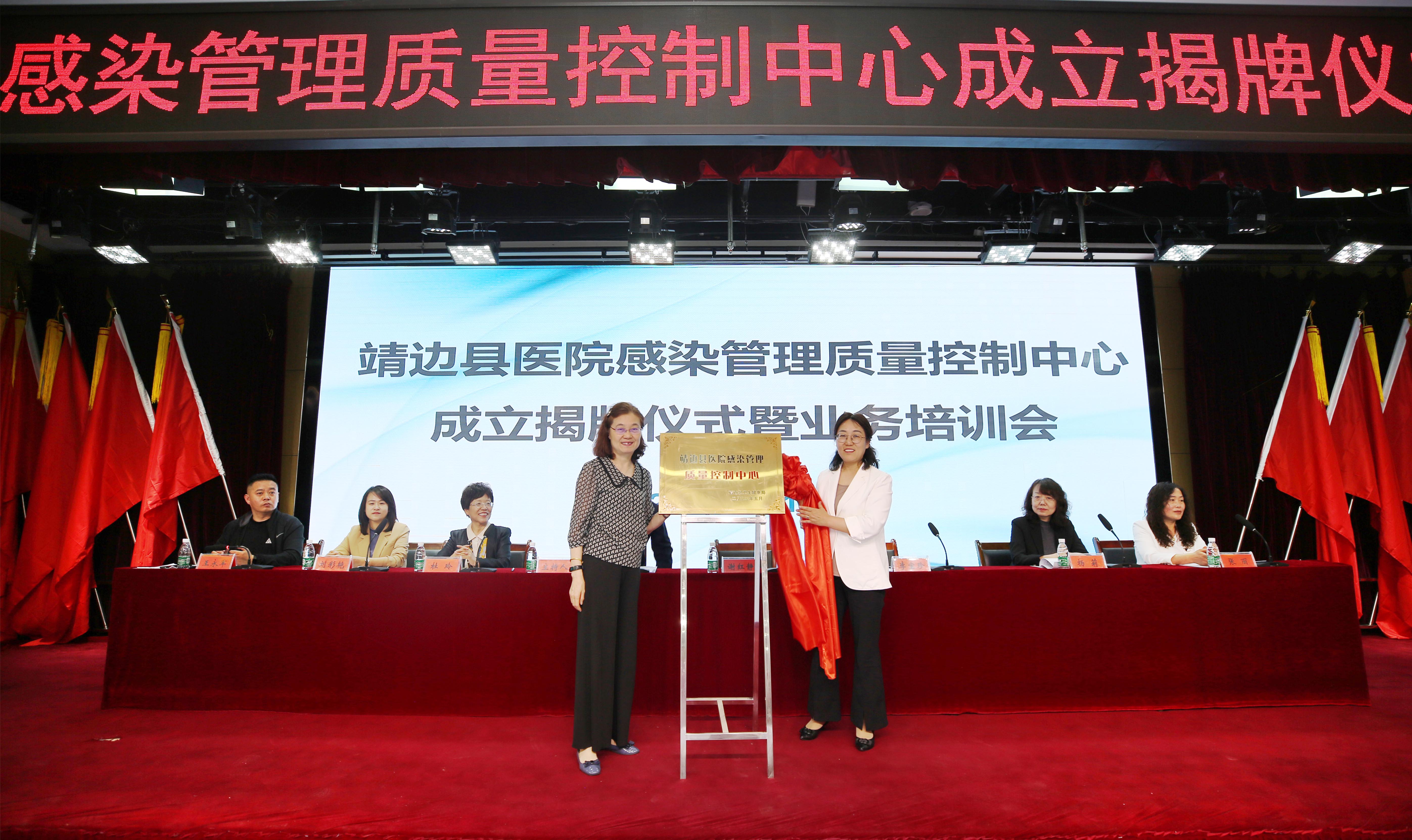 副县长谢红静宣布靖边县院感质控中心成立,并与陕西省院感质控中心常务副主任李宝珍为靖边县院感质控中心揭牌。