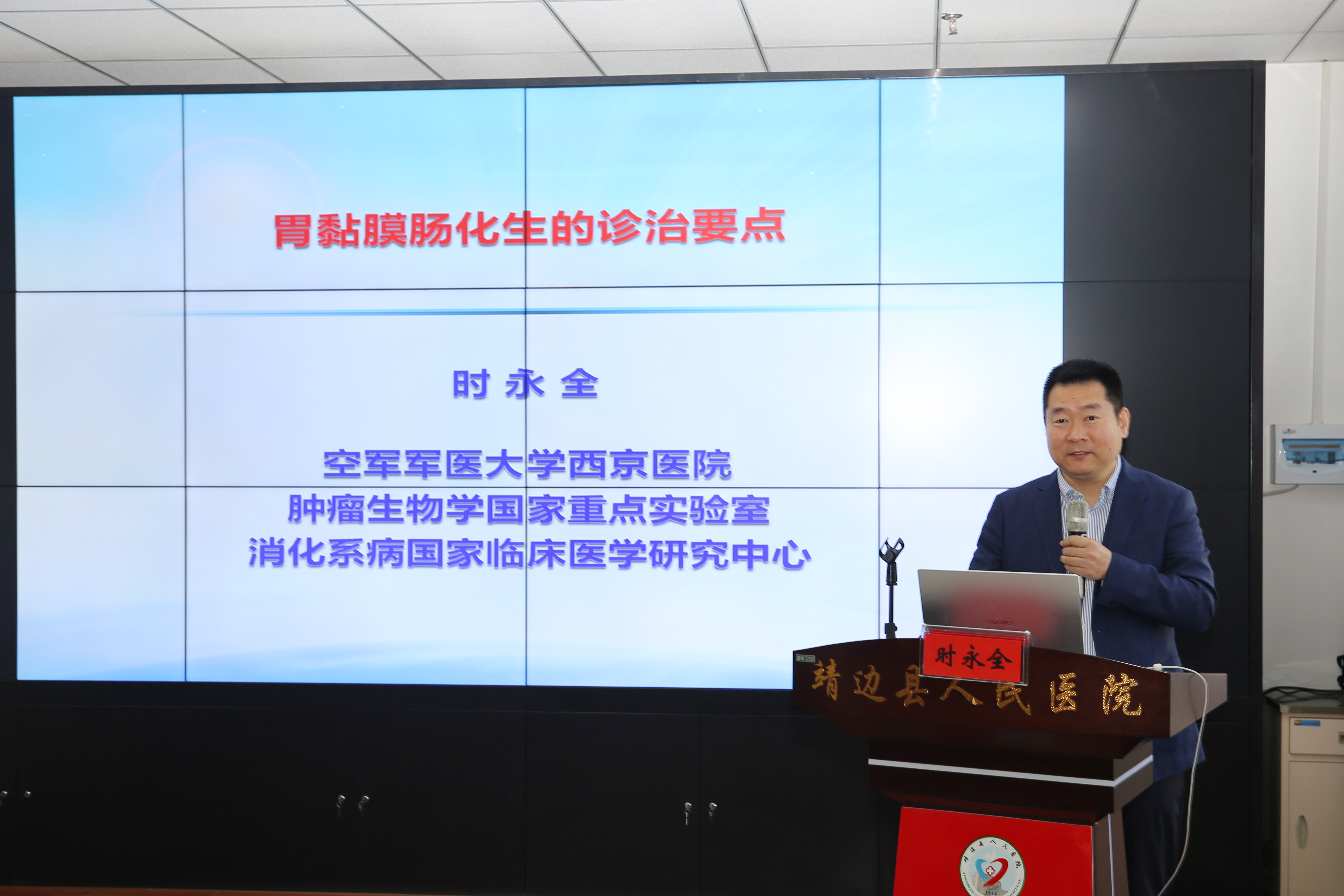 图为:空军军医大学西京医院消化内科副主任、主任医师、教授时永全作《胃粘膜肠化生的诊治要点》讲座