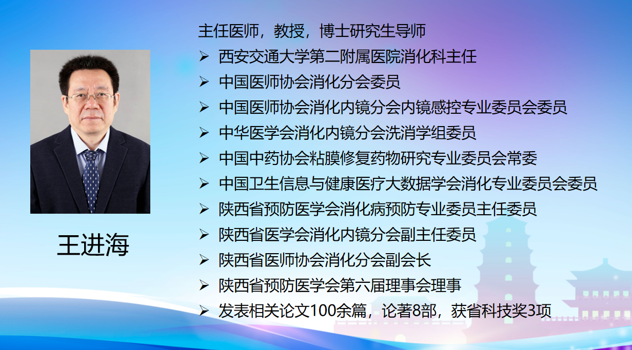 图为:西安交通大学第二附属医院消化内科主任、主任医师、教授王进海作《内镜治疗体会》讲座