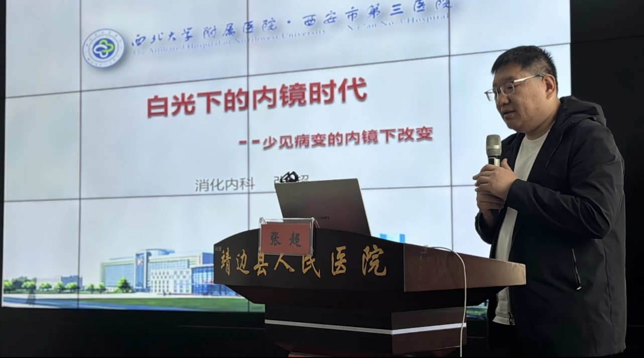图为:西安市第三医院消化内科副主任、主任医师张超作《内镜新时代》讲座