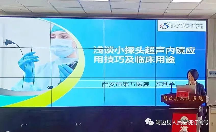 图为:西安市第五医院消化内科主任、主任医师左利平作《浅谈小探头超声内镜的临床应用》讲座