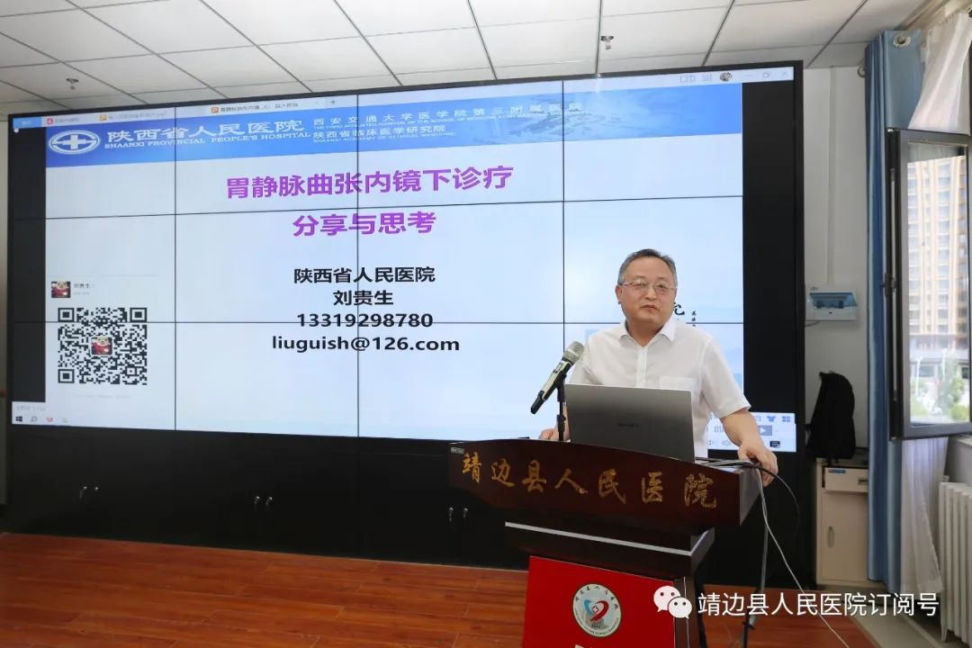 图为:陕西省人民医院消化科主任刘贵生作《肝硬化食管胃静脉曲张破裂出血内镜诊疗策略》学术讲座