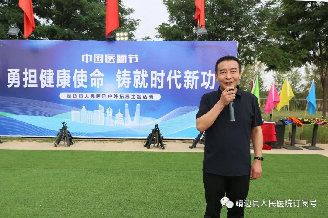 活动现场,我院副院长王雄、袁海军代表院党委向全体医务工作者致以节日的问候和衷心的感谢。全院医务工作者践行初心使命,始终坚守岗位,履行医者职责,为百姓就医和医疗卫生事业发展做出了积极的贡献。希望参加拓展的人员放下工作、生活中的所有紧张和压力,投入到拓展活动中,放松自我,缓解精神压力!