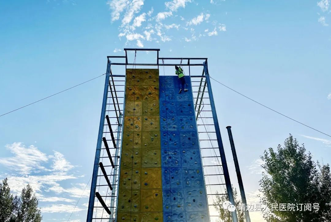 攀岩是所有项目中最耗体力的一项,考验的不仅是队员的耐力、意志力,还有各项体能。攀爬中各组队员互相鼓励,不少队员都奋力爬向了最高顶点,赢得了队友们的掌声和欢呼声。