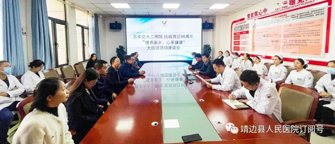 上午八点半,在我院行政楼2楼会议室进行了座谈交流。西安交大二附院耳鼻咽喉科专家康全清、普通外科专家刘阳、耳鼻咽喉头颈外科病院睡眠中心专家刘海琴、耳鼻咽喉科专家高天喜、皮肤科专家王曌、小儿外科专家杨换梅、中医科专家祁澄靖、超声医学科专家边锦霞、医疗信息管理办公室张珍、健康管理师李桔林及泌尿外科张慧,我院副院长姬向兵,专职党委副书记郝世雄及相关科室负责人、护士长参加会议。