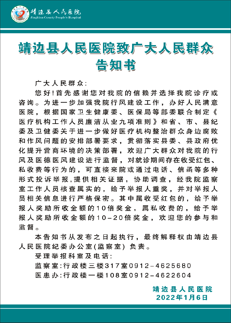 为构建和谐医患关系,方便人民群众就诊,我院于2016年设立医患关系办公室,配备专职工作人员,打造医患服务专业团队。在门诊大厅公布投诉服务流程、投诉及监督电话,对人民群众在就诊过程中,有关服务态度、就诊求助、咨询及建议等反馈的信息,及时协调处理,不断优化流程,提升服务质量。在行政楼、门诊大厅及诊区分别设立举报意见箱和整治群众身边腐败问题和作风问题专项治理行动公告牌,向广大人民群众公布投诉举报地址、电话和邮箱;同时在医院网站、微信订阅号公布总值班电话,解决了我院医患沟通渠道单一的问题,主动接受社会各界的监督。