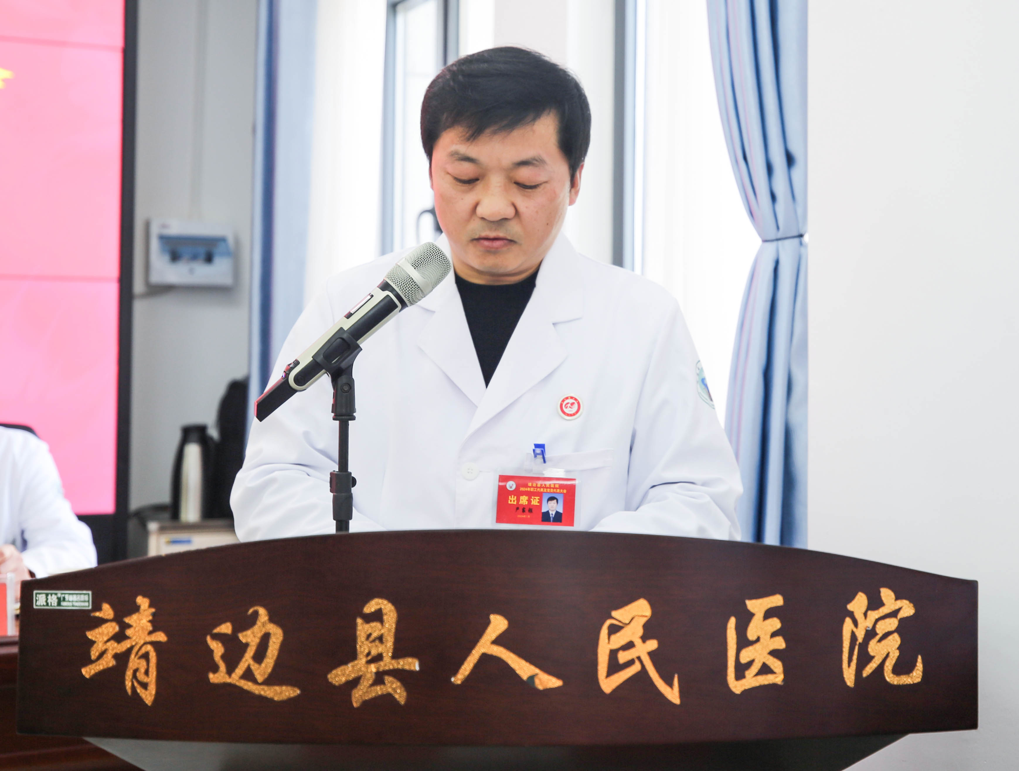 党委书记、院长马枭今作了讲话,他强调,工会作为院党委领导下的群众组织,在工作上要切实做到与医院发展目标和中心工作相结合、推动院党委的决策部署在职工中有效落实,与职工合理化的实际需求相结合,增强职工的凝聚力和向心力,充分调动职工工作的积极性、主动性和创造性,使广大职工以更好地精神面貌和工作状态,投入到为患者服务和促进医院发展中。他要求,作为职工代表和党员代表,要不断增强政治性、先进性和群众性,在各方面积极发挥模范带头作用,充分发挥“代表”的重要作用。一是做引领职工思想政治的代表。二是做医德高尚、业务精湛的代表。三是做健康医院、健康靖边建设的代表。四是做真正意义上的民主管理的代表。他希望,在新的一年里,院工会继续发挥工作职能,各位代表继续肩负广大职工赋予的光荣职责,为推动医院各项工作顺利开展和医院高质量发展作出新的更大贡献。