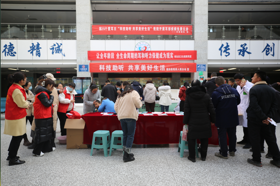 在第25个“全国爱耳日”来临之际,为切实使广大群众认识到耳和听力健康的重要性,推动养成健康用耳习惯,主动做到爱耳护耳,保护耳和听力健康。2024年3月1日,我院耳鼻喉科与县残联、县卫健局在我院门诊大厅开展“科技助听 共享美好生活”为主题的免费义诊活动。