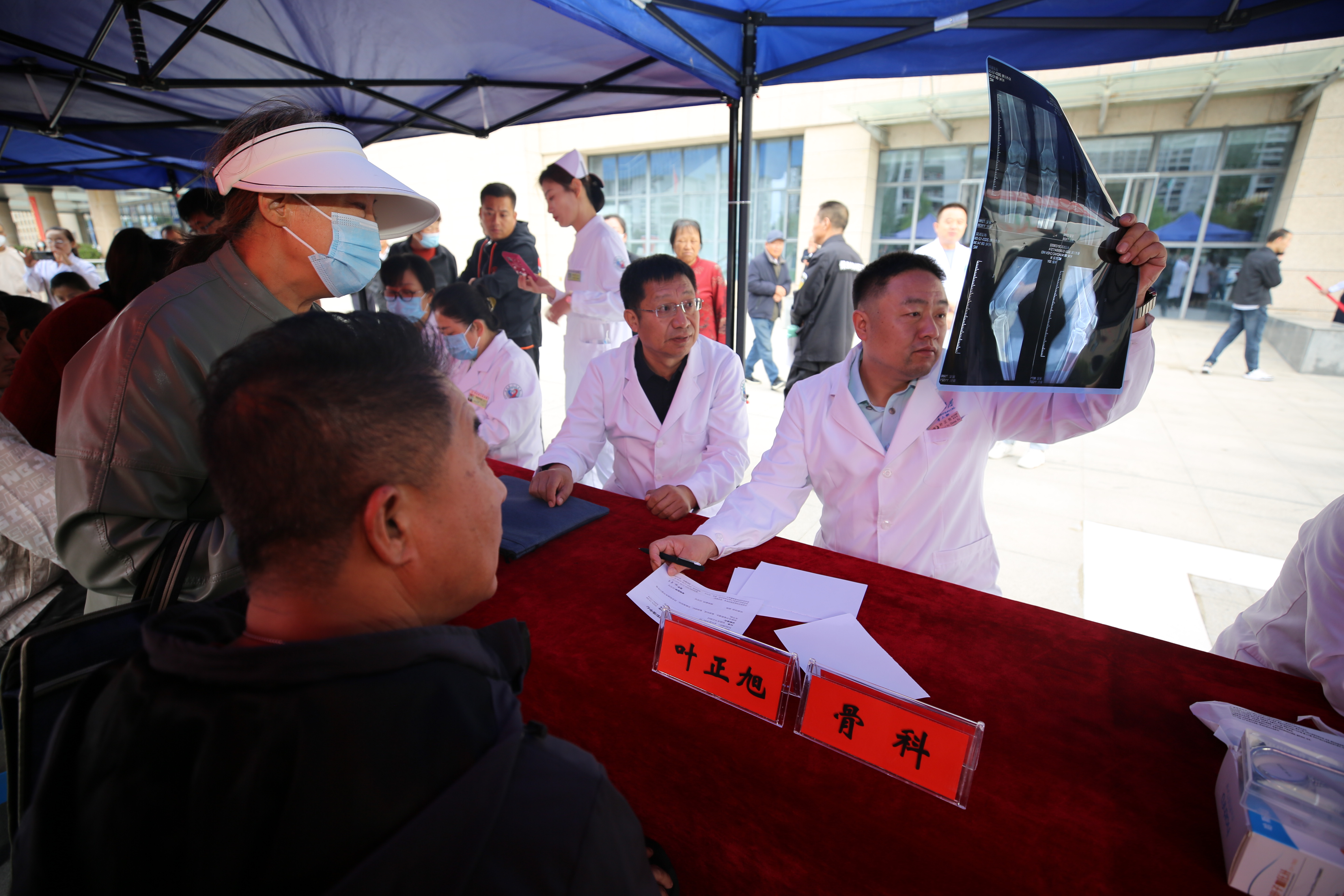 9月25日,西京医院专家团队在我院门诊楼前开展了免费义诊活动,一早闻讯而来的就诊人员排起了长长的队伍。专家们耐心细致地为前来就诊的患者提供诊疗服务,解答患者疑问,并根据病情给出专业的治疗建议。许多患者表示,能够在家门口接受到西京医院专家的诊疗,感到十分荣幸和感激。