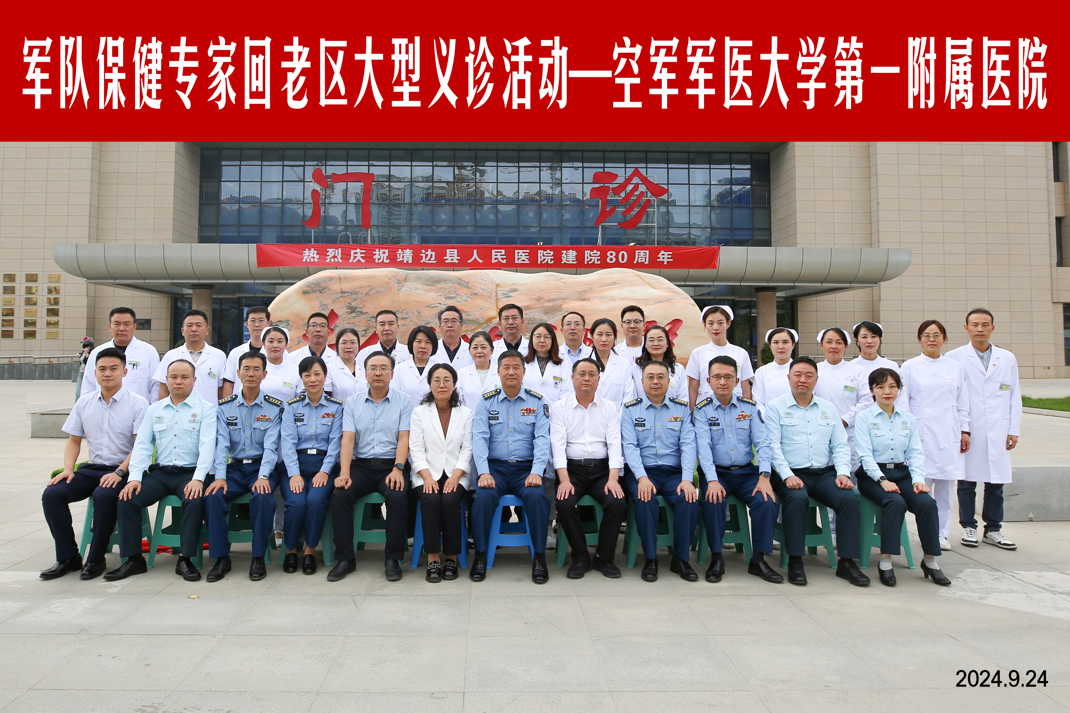 2024年9月24日-25日,空军军医大学西京医院院长党小荣,医务处为军服务办主任石秀兵、心血管内科沈敏、老年医学科王晓明、骨科叶正旭、神经内科刘永红、耳鼻喉头颈外科薛涛、皮肤科付萌、医务处施俊先等专家一行莅临我院开展“军队保健专家回老区”义诊活动。