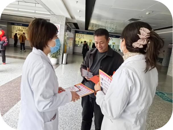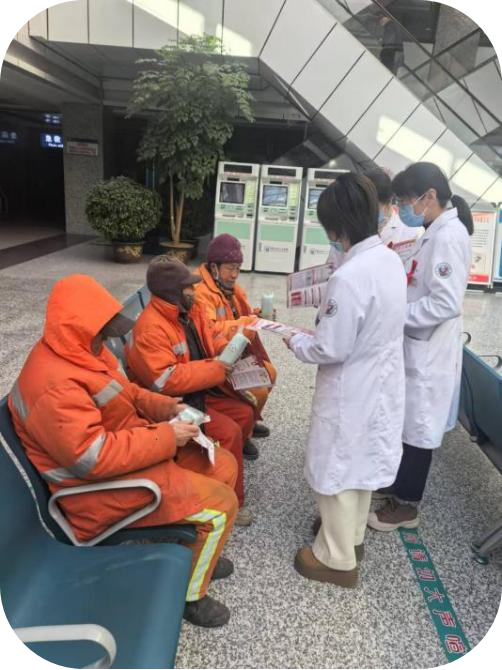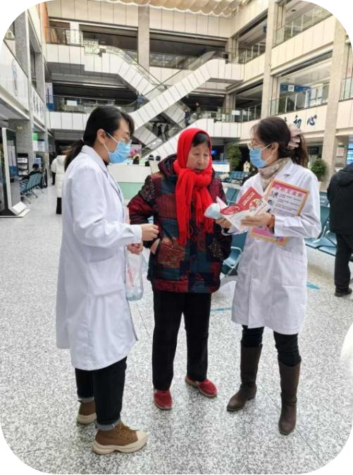 我院公共卫生科医务人员在门诊大厅,利用患者及家属候诊时间,讲解艾滋病防治要点,从日常接触不会感染艾滋病的科学认知普及,到母婴阻断、抗病毒治疗成效等专业知识深入浅出的阐释,让每一位驻足聆听的群众逐渐驱散心中对艾滋病的恐惧与误解迷雾。