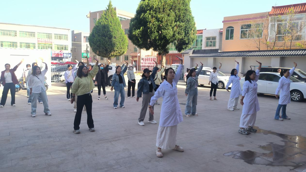 为积极响应全民健身国家战略,靖边县人民医院健康促进科及相关临床科室医务人员与北新街社区工作人员共同练习八段锦,让健康融入社区生活,精彩的表演让现场气氛达到高潮,展示了中国传统养生文化的独特魅力。