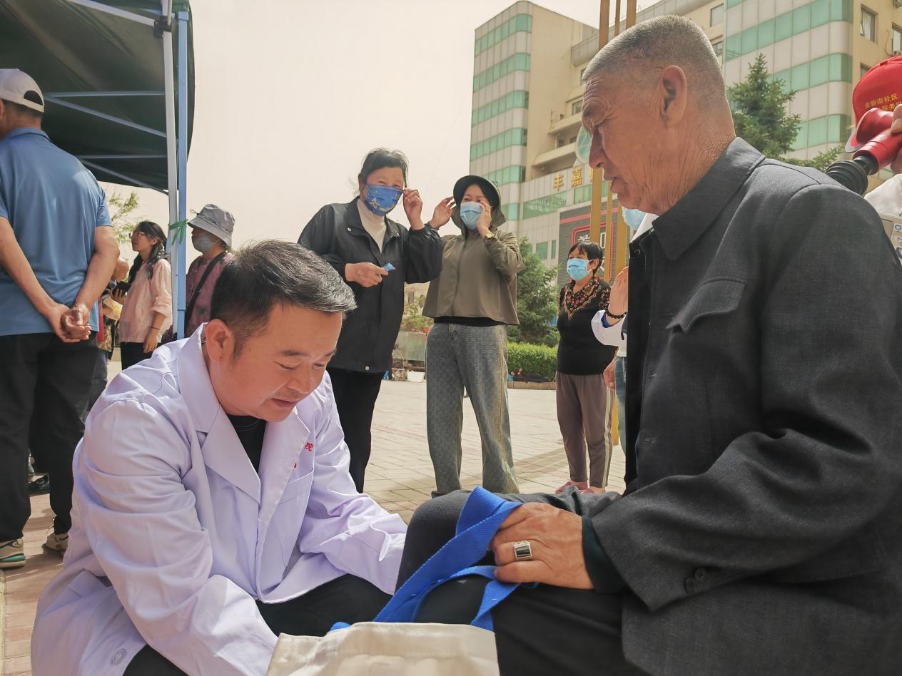下午2:00,靖边县人民医院健康促进科联合心血管内科、中医科、骨科、内分泌科、口腔中心、康复医学科、营养科在靖边县老车站广场进行义诊,医务人员耐心答疑,为群众提供免费的医疗服务。