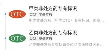 (1)非处方药(OTC):不需要执业医师或执业助理医师的处方,消费者可以自行判断、购买和使用的药品。根据药品的安全性将OTC标识分为红色(甲类非处方药)和绿色(乙类非处方药)两种,乙类非处方药相对于甲类非处方药而言,药物安全性高,不良反应小。