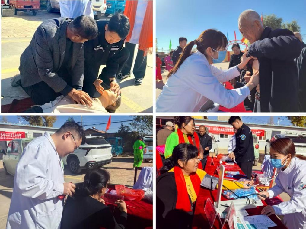 义诊现场,一片繁忙而温馨的景象:老年医学科的医生们耐心倾听老人们的健康诉求,细致解答慢性病管理的种种疑问,为有需要的群众测血压、血糖;妇产科医生为女性朋友们提供贴心的健康咨询和指导;康复医学科的医生们则为深受颈肩腰腿痛困扰的乡亲进行细致的体格检查及冲击波治疗,传授简单的家庭康复技巧;肛肠科的医师也耐心地为前来咨询的居民解答常见肛肠疾病的预防与保健知识;急救中心的医护人员更是带来了一堂生动的“生命课”,利用模拟人手把手地演示心肺复苏等急救技能。