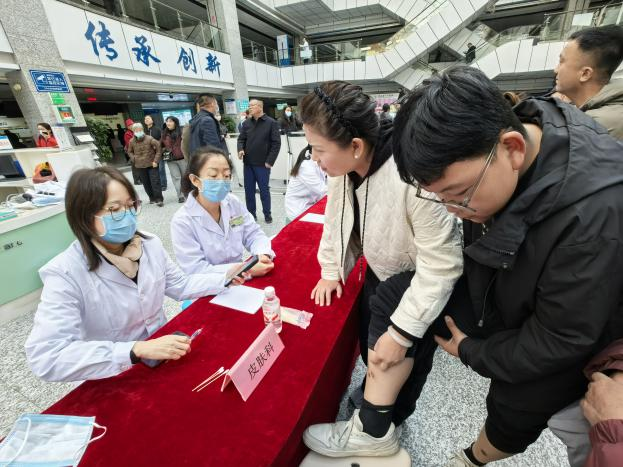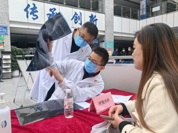 座谈会结束后,来自西安多家知名医院的11位靖边籍专家,在我院门诊大厅开展了扎实深入的义诊活动。涵盖耳鼻咽喉头颈外科、普通外科、肾脏内科、骨科等多个专业领域的专家们。