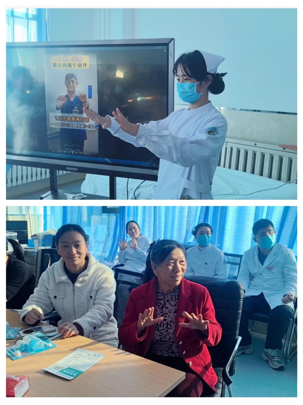 在心血管内科病区,医护人员为住院患者带来了一场实用的健康操训练。在专业指导下,患者们认真学习每一个动作,掌握科学锻炼方法,助力预防心梗、脑梗等心脑血管疾病的复发,推动“以治为主”向“防管结合”转变。