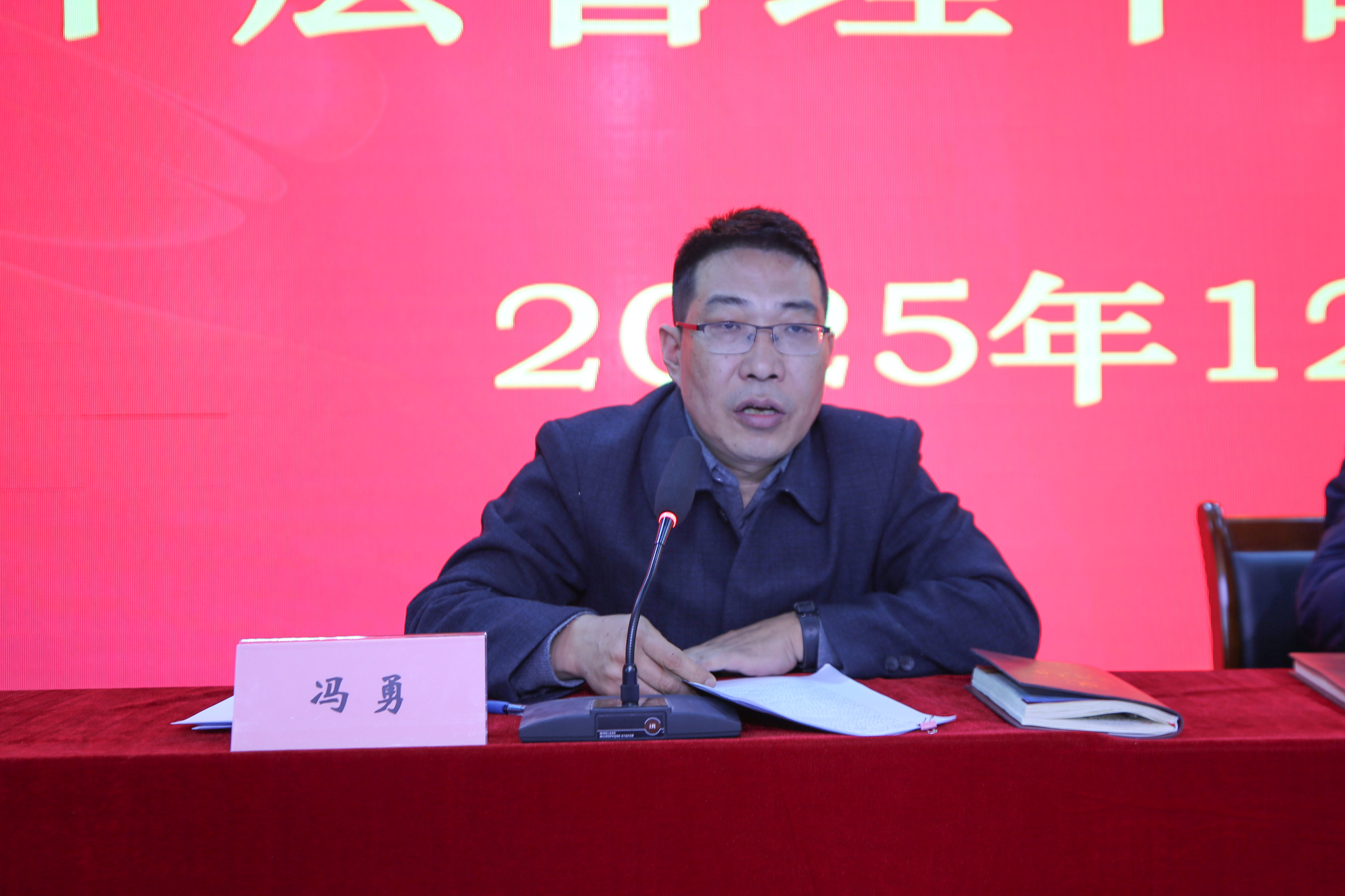 2025年12月30日,我院召开全院干部作风整顿推进会暨业务工作安排会。会议全面总结上一阶段干部作风整顿工作成效,深入部署下一阶段重点任务,并传达近期省、市、县关于医疗卫生系统作风建设、医改、安全管理等会议精神,统筹安排医院年度收官工作。院长王雄,副院长姬向兵、冯勇,其他院领导、各党支部书记及全体中层管理干部参会。党委书记袁海军主持会议。