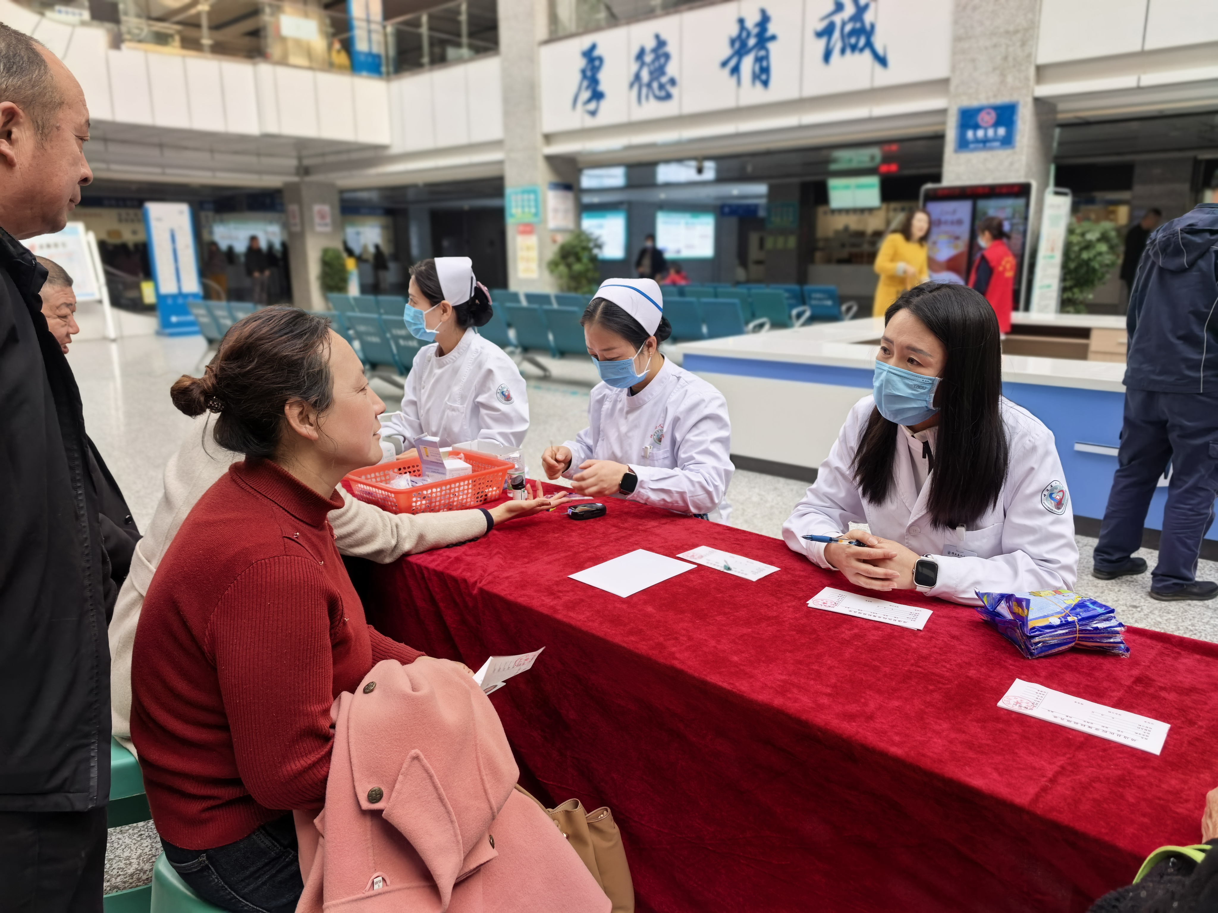 活动现场,泌尿肾病中心医护人员有序为前来义诊的群众提供免费的血糖检测和尿常规检查,专家团队结合检查结果,耐心解答疑问,详细讲解慢性肾脏病的隐匿症状、潜在风险及科学管理知识,并为糖尿病、高血压等高危人群提供了个性化的生活方式指导与预防建议。