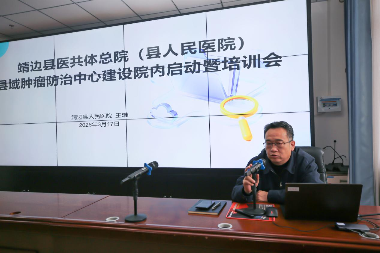 为全面部署和推进县域肿瘤防治中心建设工作,3月17日,靖边县医共体总院召开县域肿瘤防治中心建设院内启动暨培训会议。医共体总院院长王雄出席会议并作动员讲话,各职能、临床、医技科室主任参加会议。会议由中心办公室主任孙波主持。