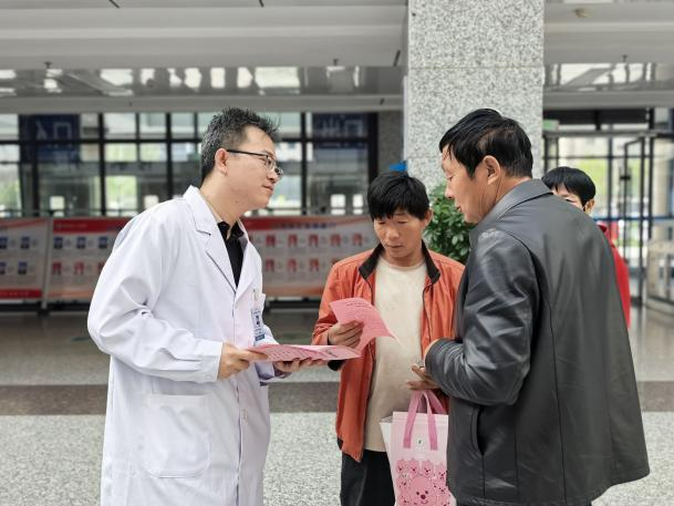 我院在大厅设置科普专区,由县域肿瘤防治中心办公室发放肿瘤防治健康科普资料,并在大屏通过循环播放肿瘤防治知识宣传片、专家现场讲解等形式,系统普及癌症风险因素防控、规范诊疗流程、复查管理等核心内容,让科学防癌理念深入人心。