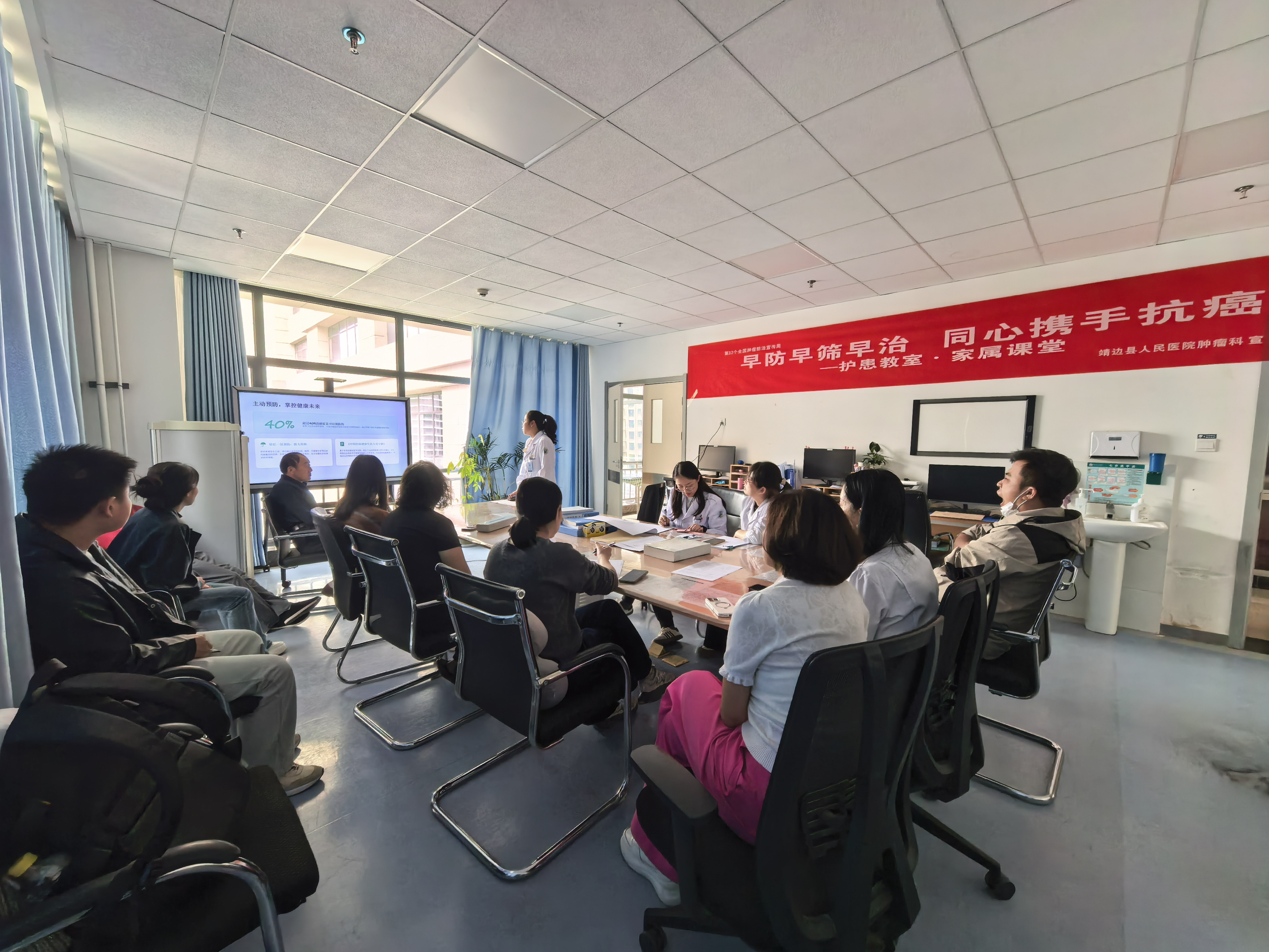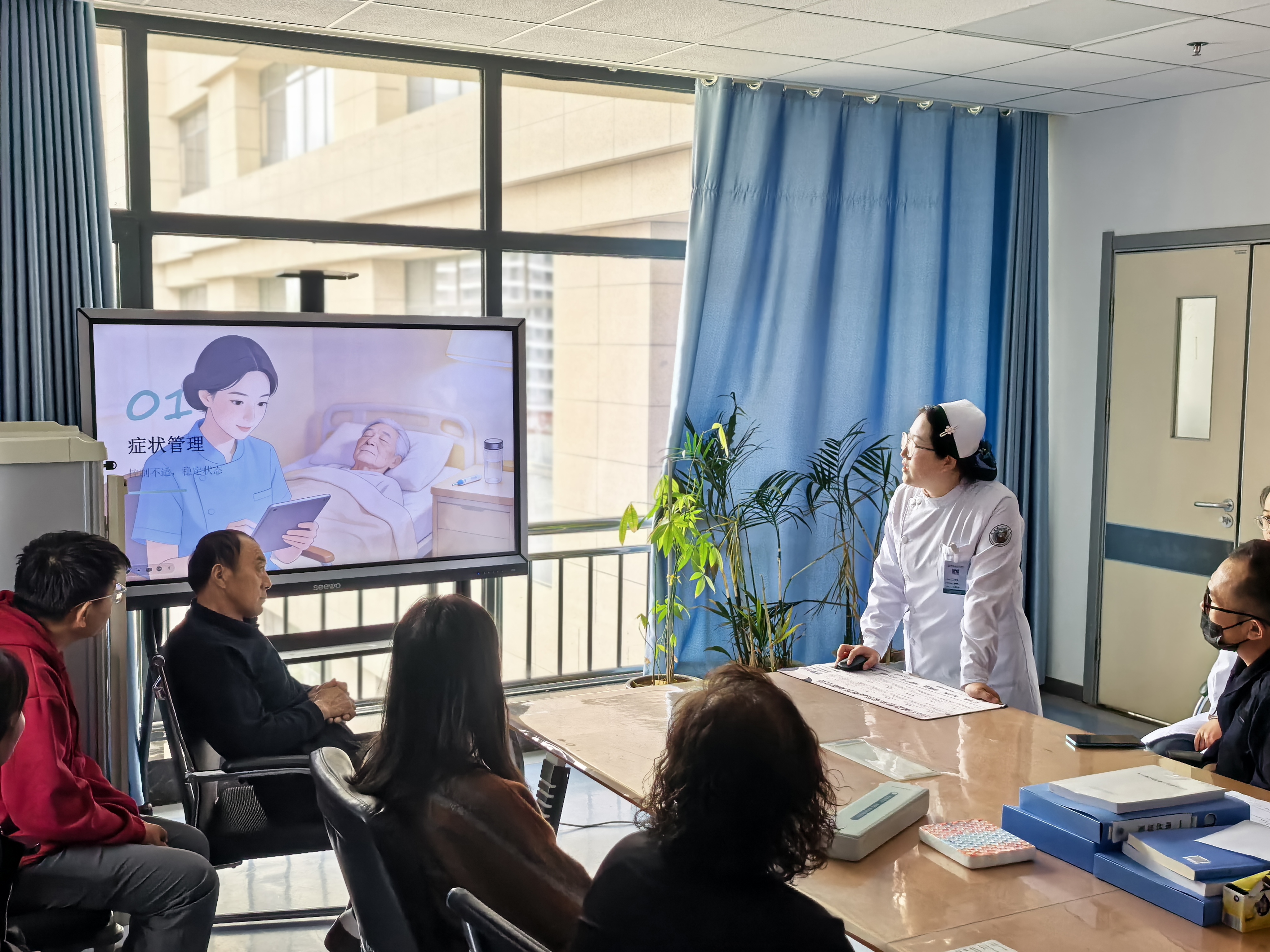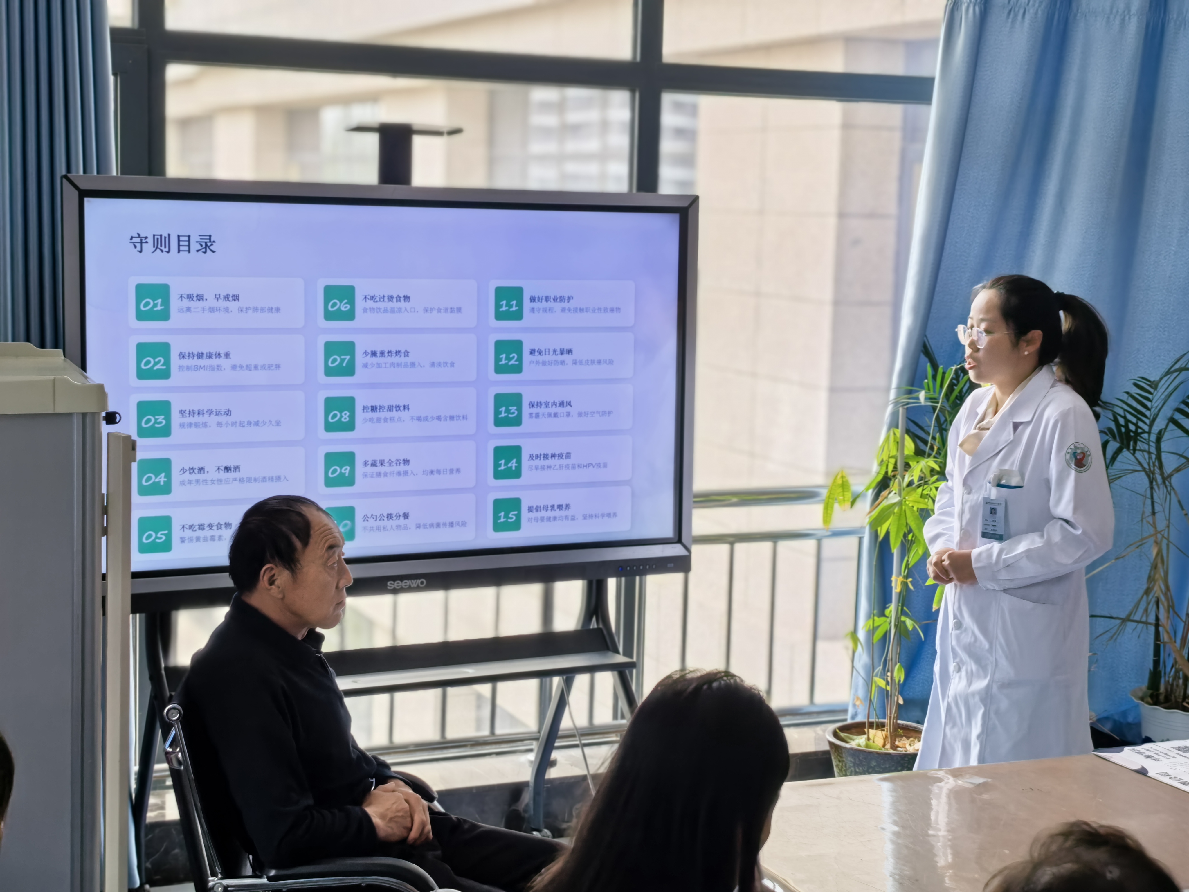 我院肿瘤科还开展了护患教室·家属课堂专题宣讲。围绕《中国防癌健康生活方式守则》普及15条防癌准则,同步详解癌症患者居家照护全流程,涵盖症状管理、感染预防、营养支持、心理疏导等核心内容,以专业科普赋能家属照护能力。