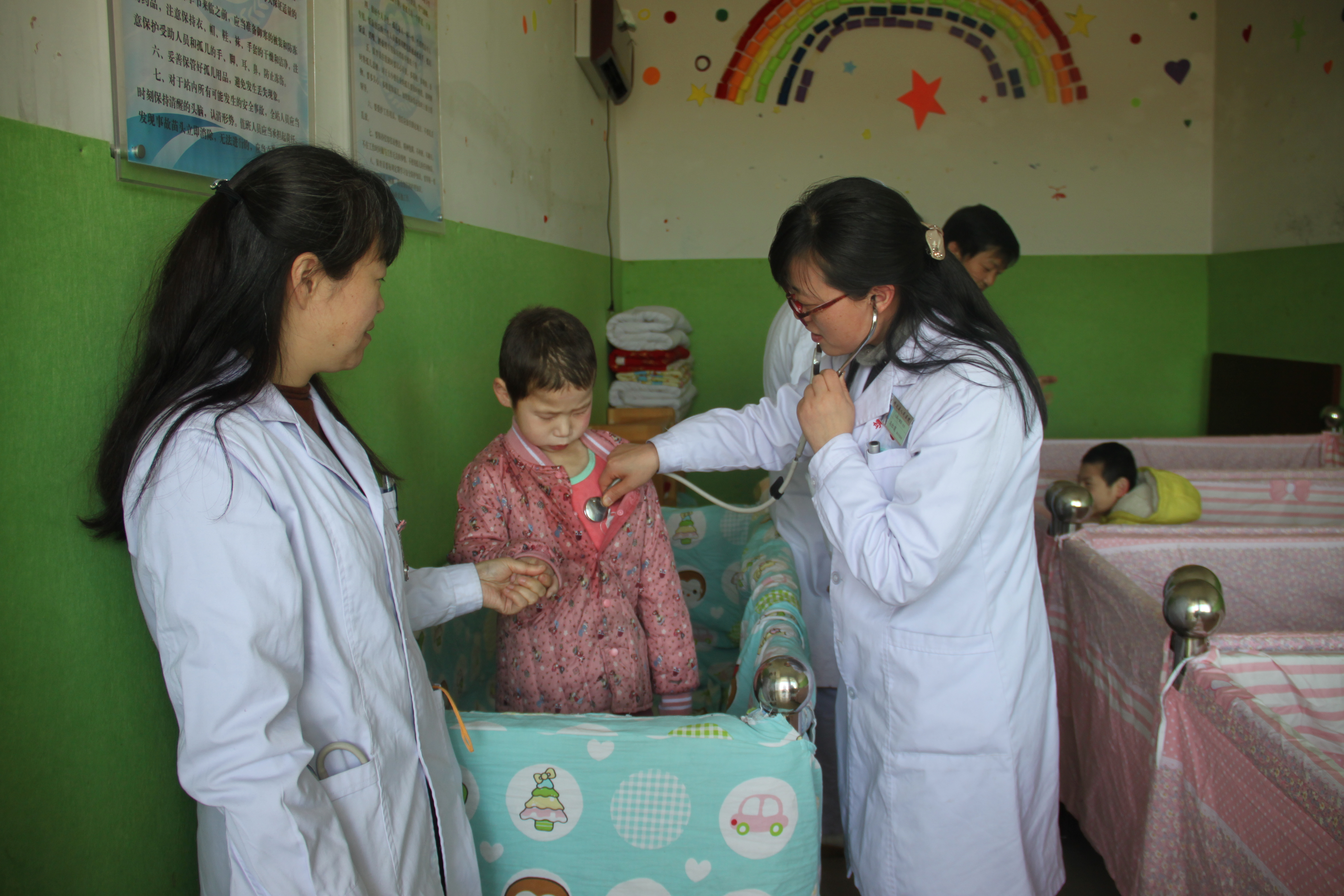 救助站的孩子们来源不同,年龄分布不同,残疾程度不同,最小的刚出生不久,一部分大孩子因为严重脑瘫甚至生活不能自理。每一个孩子都需要她们悉心的照顾和辛劳的付出。每当孩子们身体不适或患病的时候,也是她们付出最多的时候。因救助站的工作人员平日工作繁忙,领孩子们到医院做检查不方便。严家银主任了解情况后,经与医院领导和救助站协商,孩子们需要到医院救治的,靖边县人民医院为他们开通绿色通道,需要集中做日常健康检查的,儿科医护人员分批次到救助站进行集中诊治。