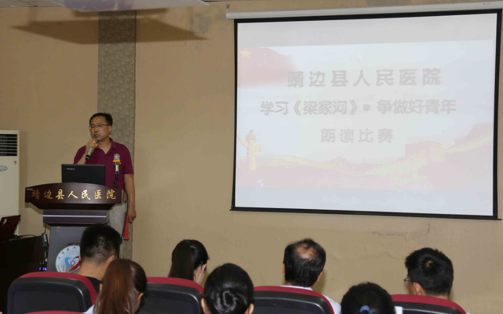 7月25日下午,我院党支部、工会委员会、团支部在2号楼学术报告厅举办了“学习《梁家河》 争做好青年”朗读比赛,共有21组队伍参赛,评委组由靖边电视台两名工作人员及我院相关科室人员组成。