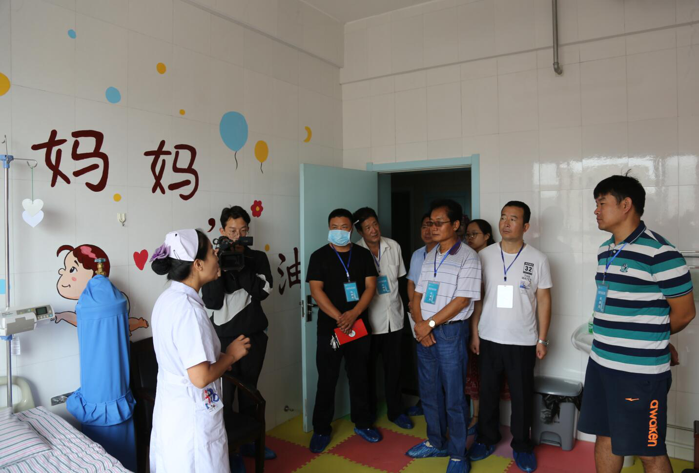 图为:各位代表参观产房---温馨待产室