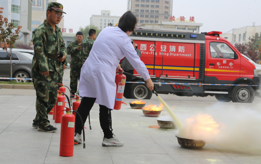 10月19日下午3点半,由我院后勤保障服务部组织,在3号住院楼门前开展了消防安全应急演练活动,各科室负责人、护士长、护工及行政后勤人员参加了活动。
