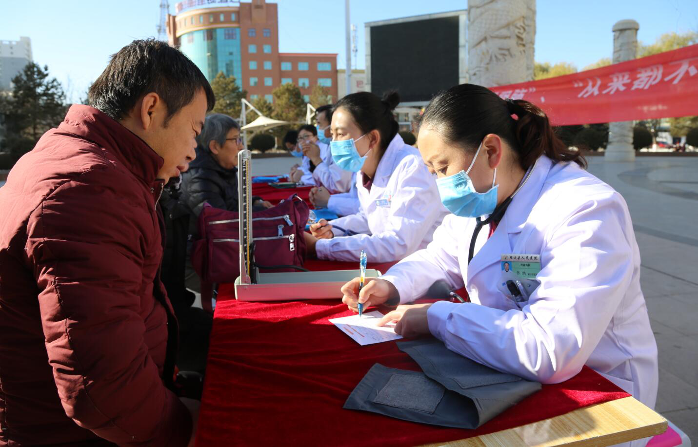 活动现场,医护人员为前来的患者测量血量、耐心细致为他们答疑解惑,并为他们提供专业的治疗建议,护士们为前来的群众讲解慢阻肺病对人体危害的基本知识,倡导广大群众积极行动起来,参与到慢阻肺病的防治中来。