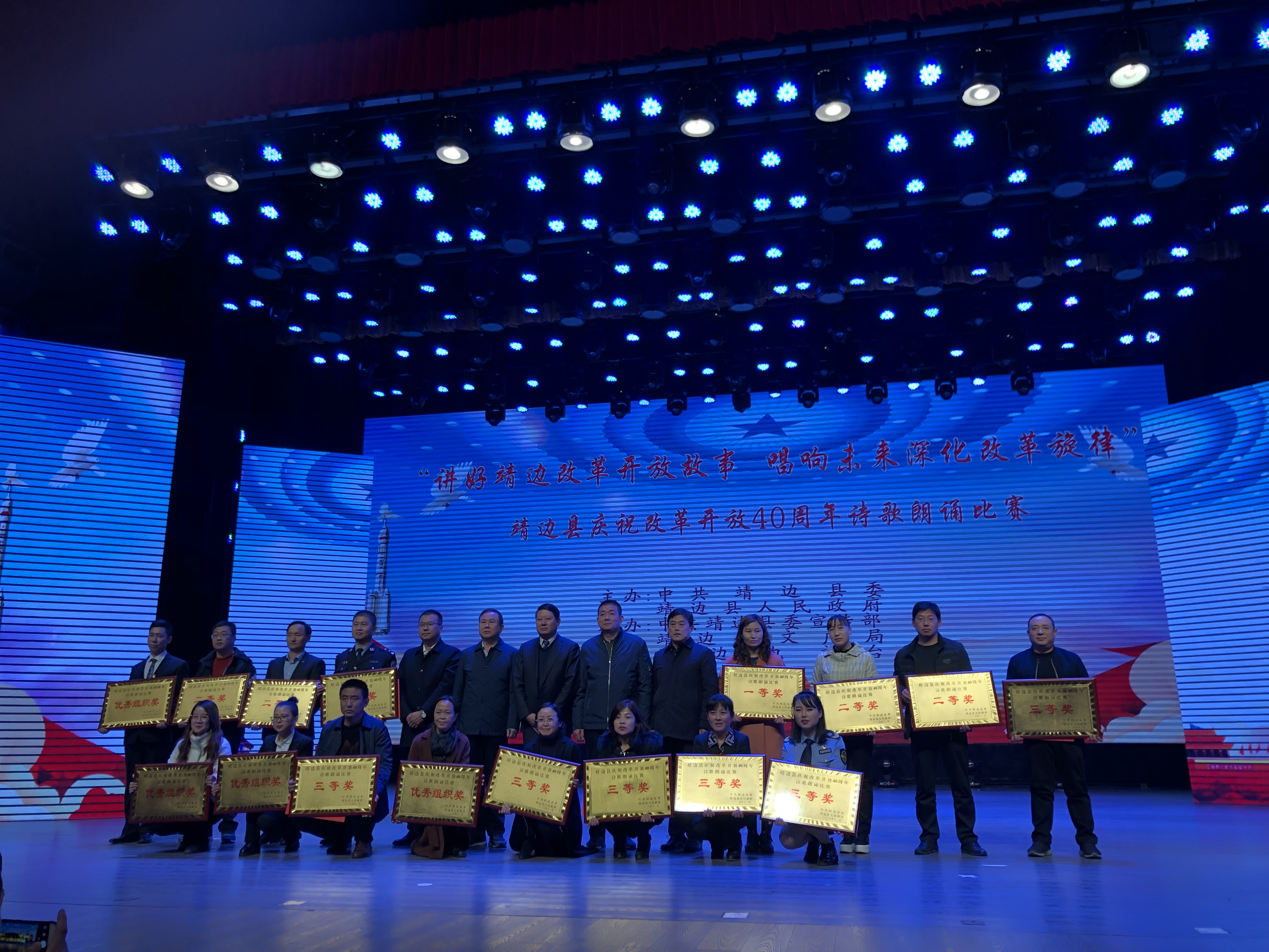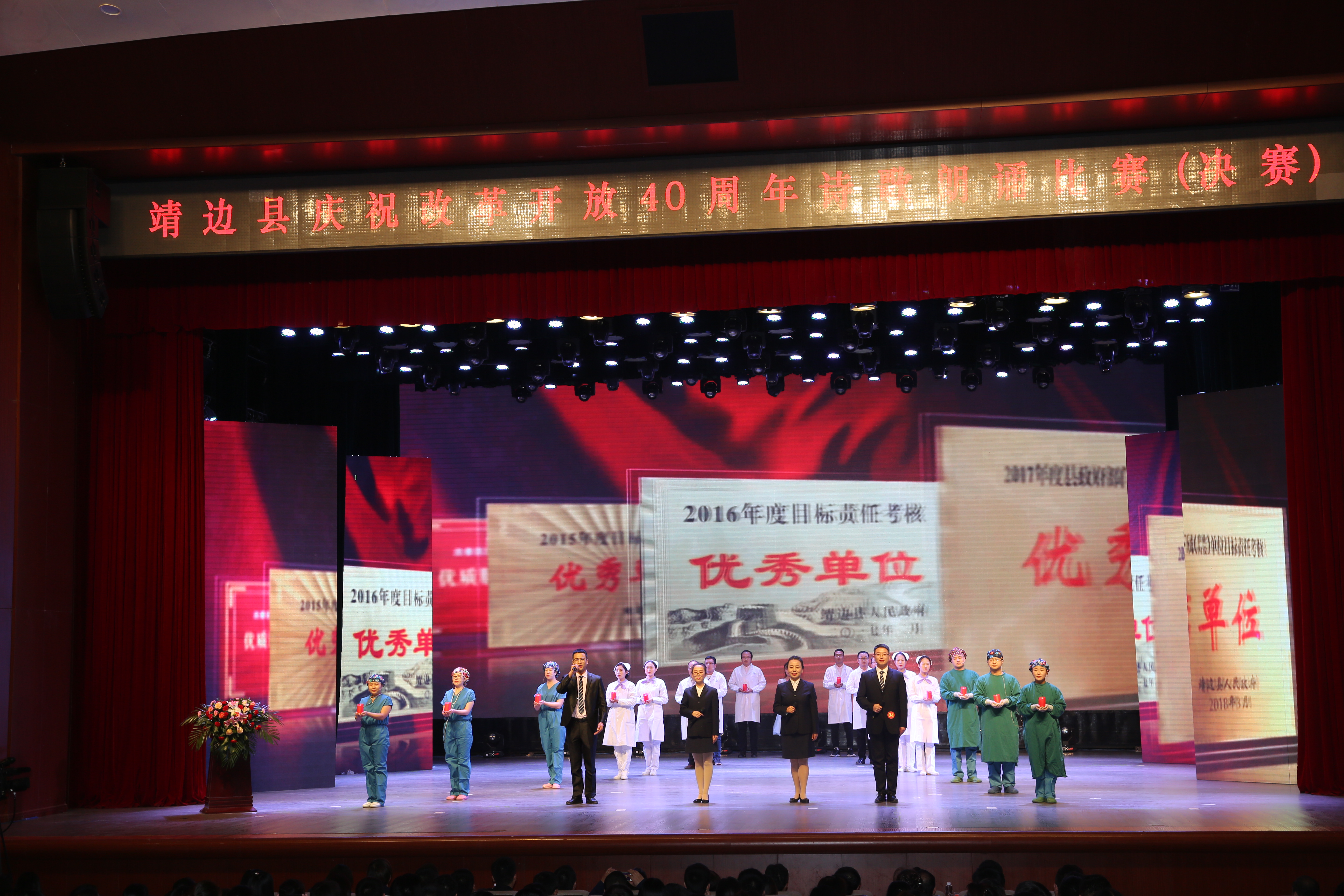 2018年11月29日在靖边县人民礼堂,由中共靖边县委、县政府主办的“讲好靖边改革开放故事 唱响未来深化改革旋律”暨庆祝改革开放40周年主题诗歌朗诵比赛。在此次比赛中,我院以《乘改革东风 写医者春秋》,荣获一等奖!