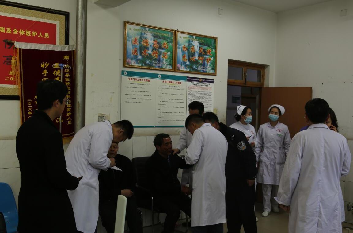 靖边县人民医院先后救治伤员37人,为保证伤员在第一时间得到全方位的救治,省、市、县各级领导及专家也先后赶赴该院进行现场指挥。省卫健委副主任刘玲、省医政医管局副局长张一力、省人民医院书记徐永刚及5位专家;市卫计局局长惠德存、市卫计局医政科科长李明军、市卫计局疾控科科长吴涛及8位专家,以及县卫计局领导和工作人员入驻我院。救治工作以县级为主,省市专家指导,实行一患一医一护医疗救治,省市县三级会诊;患者分轻症、重症、危重症,分类指导救治;对重症、危重症患者执行省市县三级医师救治和救治小组;加强医院院感、护理、患者及家属心理干预疏导和人文关怀。妥善接待每位伤员家属,并做好生活安排。后勤保障人员连续加班加点,全力以赴保障伤员药品、医疗器械、医疗设备和血液的供应。