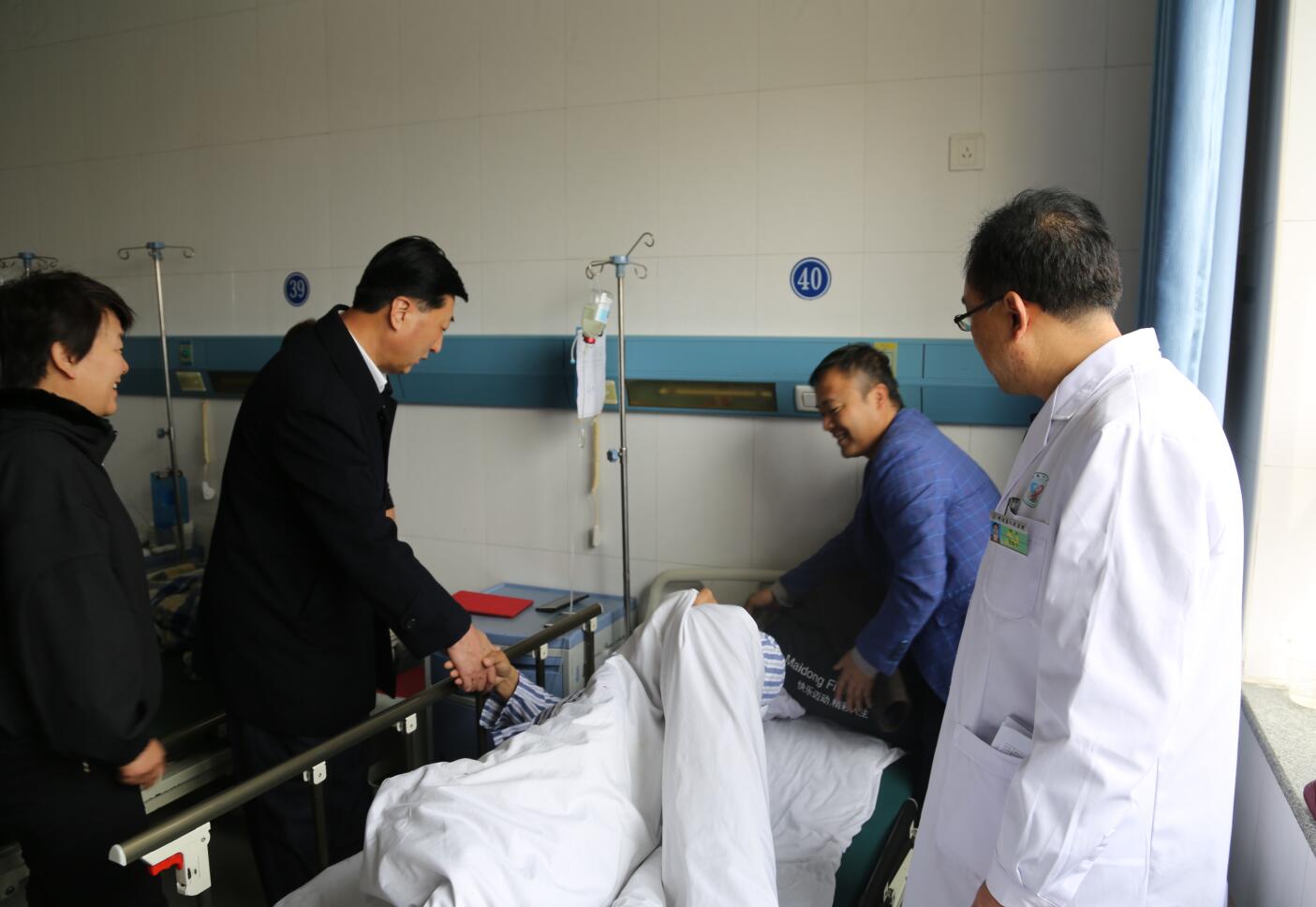在此次救援工作中,省市县主要领导高度关注,多次作出重要批示,并时刻关注伤员救治情况。期间,榆林市委副书记钱劳动、副市长张明、副秘书长韩玉堂、市委组织部副部长黄志宏,靖边县委书记刘维平、常务副县长孟春伟、组织部部长李万昌等市县领导也多次到病房看望伤员,询问了解救治及康复情况。