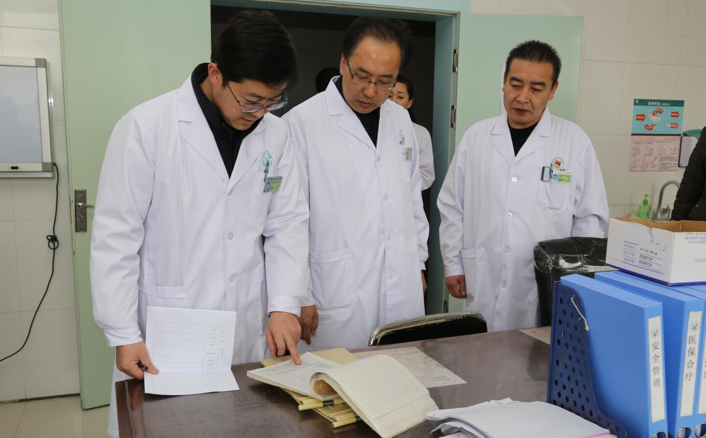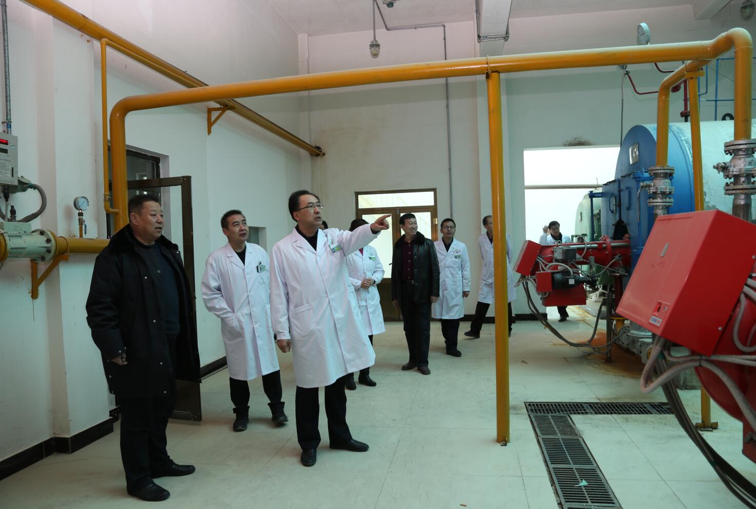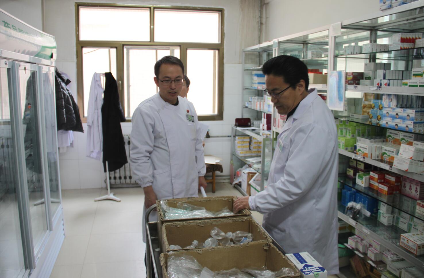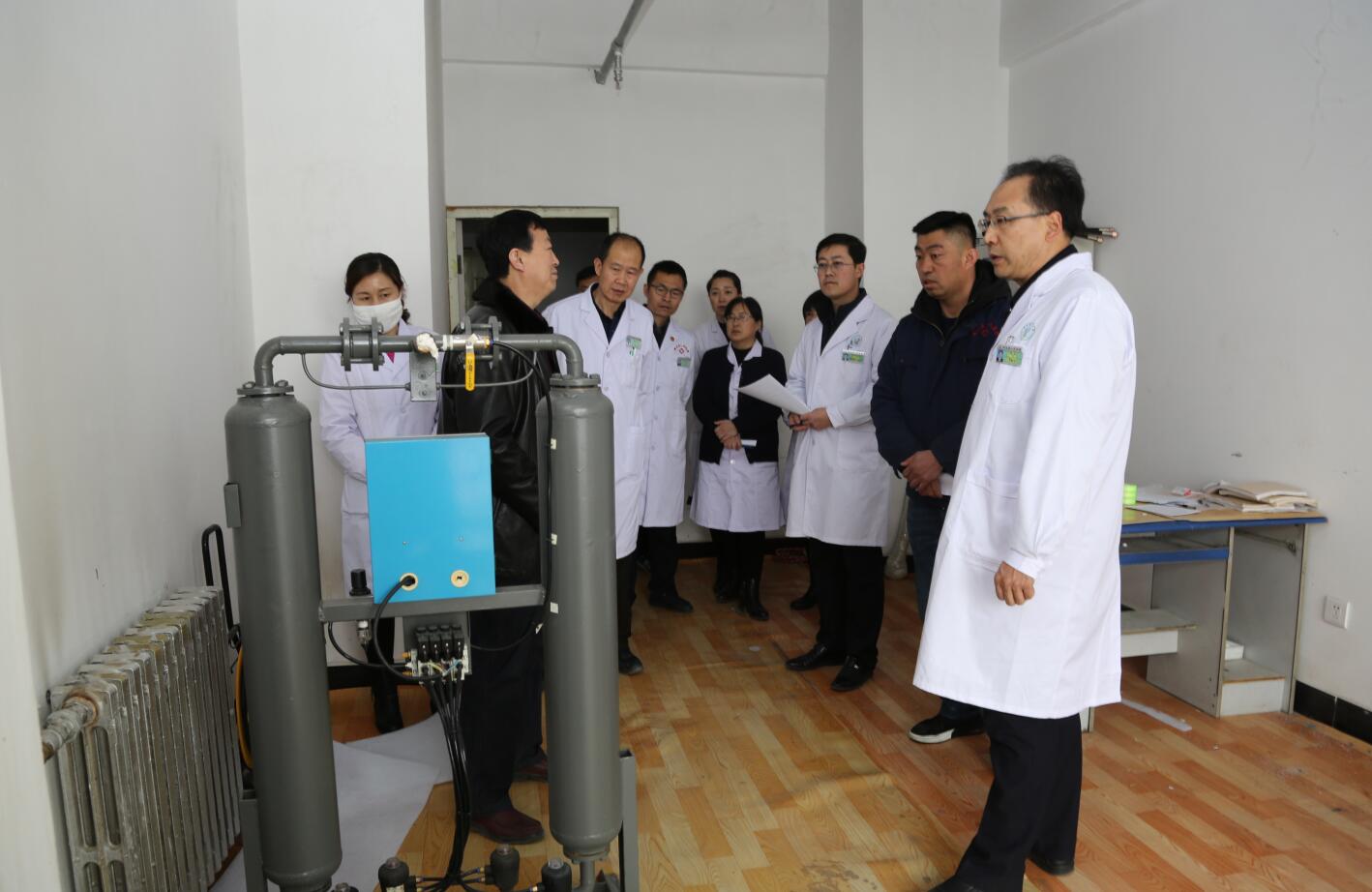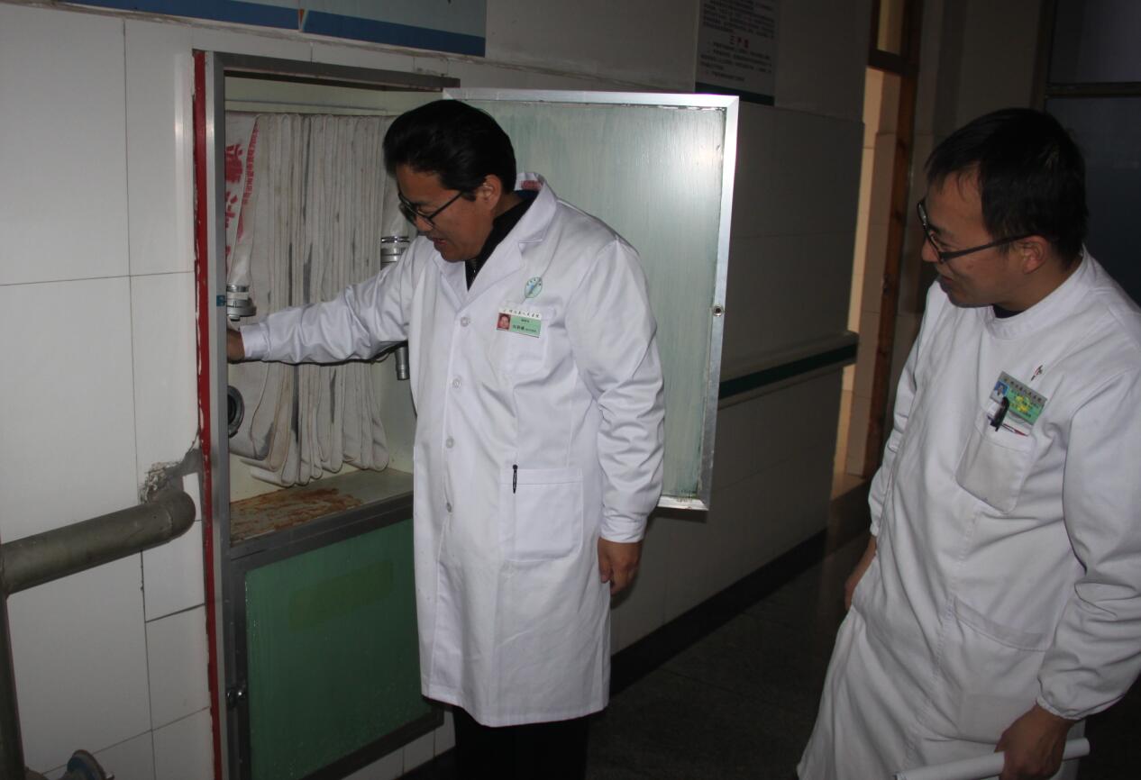 第一组,由院长马枭今带队,相关职能部门负责人参加,先后检查了3号楼住院部、血液透析室、药房、锅楼房、CT室等科室。