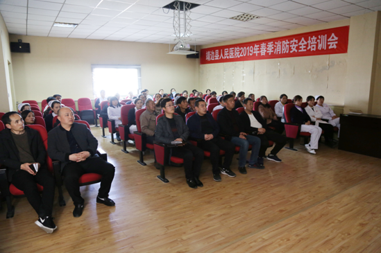 为进一步提高消防安全意识,提升全院职工的防范能力,2019年3月18日,我院邀请榆林市亿安消防知识科教中心教官陈刚来院进行了消防安全知识培训。除值班人员,全院共90余人参加了培训。