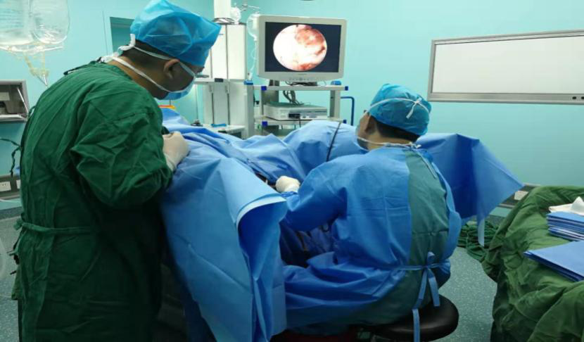 3月12日,在腰硬联合麻醉下,泌尿外科冯主任及其医务人员对患者实施了手术。在耻骨上膀胱去切一小口,顺利取出膀胱结石2枚(约2.5cm)后缝合。在进行前列腺电切时,发现该患者伴有尿道狭窄,使得电切镜镜鞘无法置入膀胱内,进而无法进行微创手术。