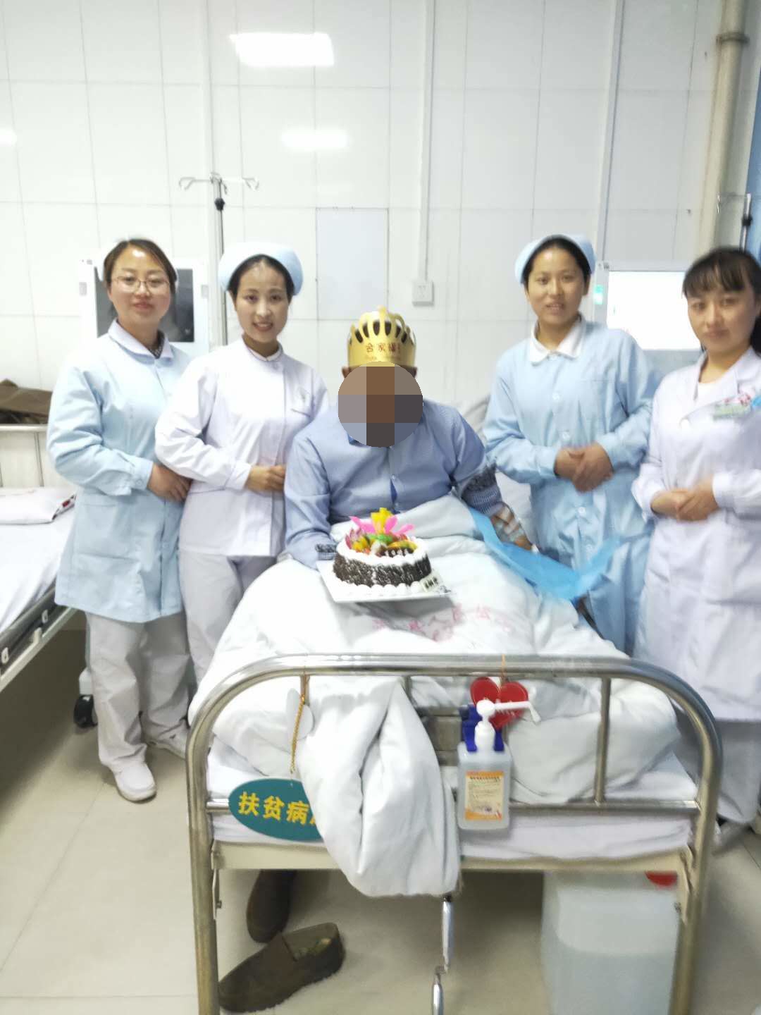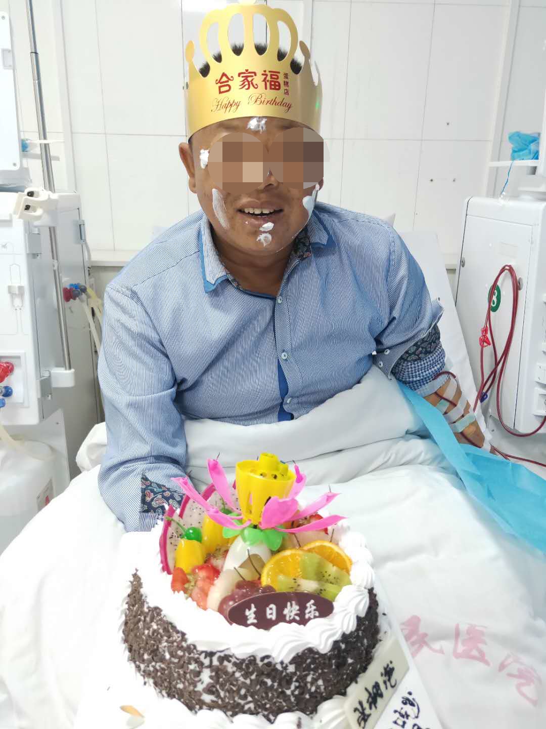 张某某是靖边县人民医院血液透析室的一名患者,已做血液透析治疗四年了。由于他在饮食方面不能很好的控制自己,一周需做四次治疗,被大伙儿称为“老顽童”。2019年6月12日的下午,护士们像往常一样送走病人收拾好病房,准备下班,张某某气喘吁吁地走进病房对护士说:“快加班给我做透析治疗吧。”护士疑惑地问道:“你的透析不是安排在明天了吗?”张某某有气无力地说:“实在不好意思,耽误你们正常下班了,今天是我生日,你们就体谅一下。”看到他痛苦的表情,护士们立即开始了工作。患者由于太过疲劳,在透析中睡着了。这时,值班护士高海花在网上为张某某定制了生日蛋糕。等张某某醒来,她与两位同事点好蜡烛捧着生日蛋糕,唱着生日祝福歌走进病房。张某某感动地说:“从我开始做透析起,就再没有过过生日了,你们赶紧把所有相片和视频发给我,我要给我们家人看看,也给自己留一个纪念。”高海花和她的同事们看着他高兴的表情开玩笑地说道:“你不难受了?刚才还站都站不住了,呼吸困难的,现在看起来很好啊!”病房里顿时传出一片愉悦的笑声!