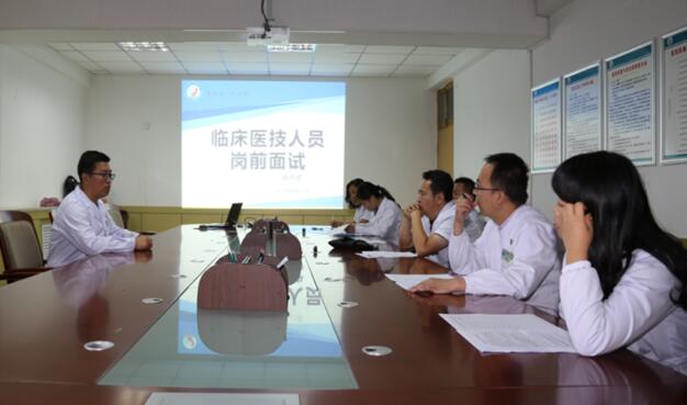9月12日下午15时,医务部组织相关人员及相关科室科主任对上岗人员进行岗前面试。