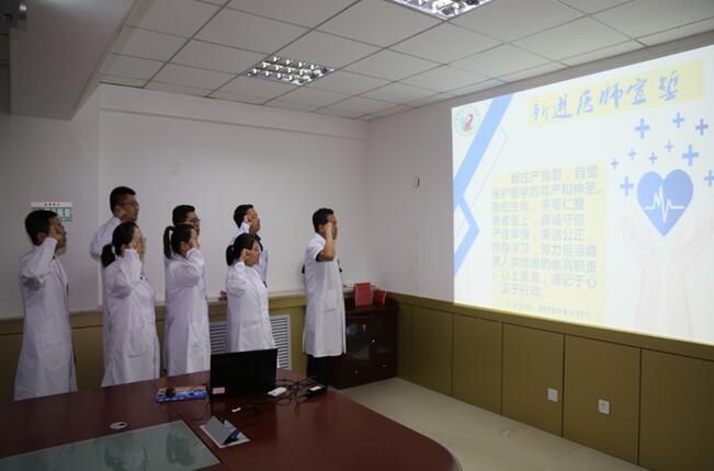 为了使他们谨记自己的责任与使命,自觉维护医学的尊严和神圣,甘于奉献,大爱无疆,源于心,践于行。由业务院长王雄领誓进行了庄严的医师宣誓: