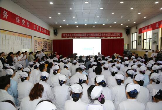 为强化医院医务人员全心全意为人民服务的意识,牢固树立“以病人为中心”的服务理念,时刻把病人的安危放在心上,不断增强工作责任心,规范诊疗操作规程,进一步提高全院医务人员的业务素质和服务质量,达到以比促学、以比促练的目的。2019年9月20日至9月21日,靖边县人民医院用两天的时间举行了第四届医、护、技及行政后勤岗位技能大比武活动。全院各临床、医技科室以及行政后勤(保洁、保安)等共 41个 科室115人参加比赛,参赛人员均在赛前随机抽取。