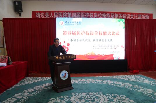 出席本次比赛的领导有县总工会副主席罗建明、县卫健局副局长田怀军、我院对口帮扶西安医学院第一附属医院黄灵娟、李亚明两位专家、县中医医院、县妇幼保健院及各乡镇卫生院负责人,他们均在现场观摩了比赛。县总工会副主席罗建明、县卫健局副局长田怀军分别作了重要讲话,并预祝此次活动的举办圆满成功。此次活动由靖边县人民医院党总支委员会主办、医院工会委员会协办。