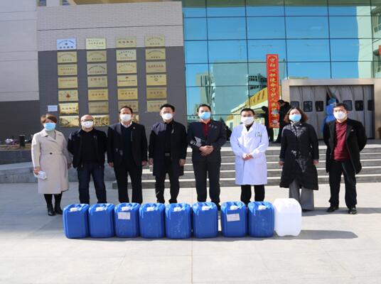 图为:靖边县政协为我院捐赠过氧乙酸和75%酒精