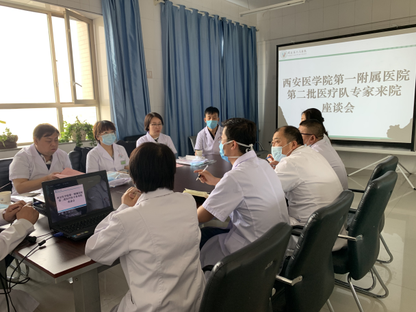 2020年5月24日, 西安医学院第一附属医院第二批对口支援医疗队专家入驻我院,开展2020年支医帮扶工作。医疗队由普外科、全科医学院教学科长黎耀东带队,专家成员由呼吸与危重症医学科主任周晶,急诊科李正,神经内科折潇,心内科张晓红组成。