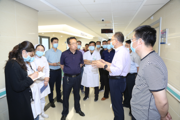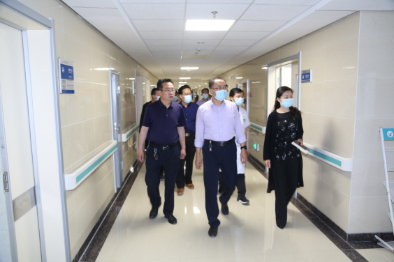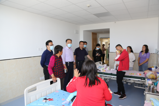 5月22日早,院长马枭今、副院长刘朝曦、王雄、袁海军、党总支副书记姬向兵、工会主席冯勇,党政办、医务部及相关职能科室负责人一行到新院区查看儿科运行情况。